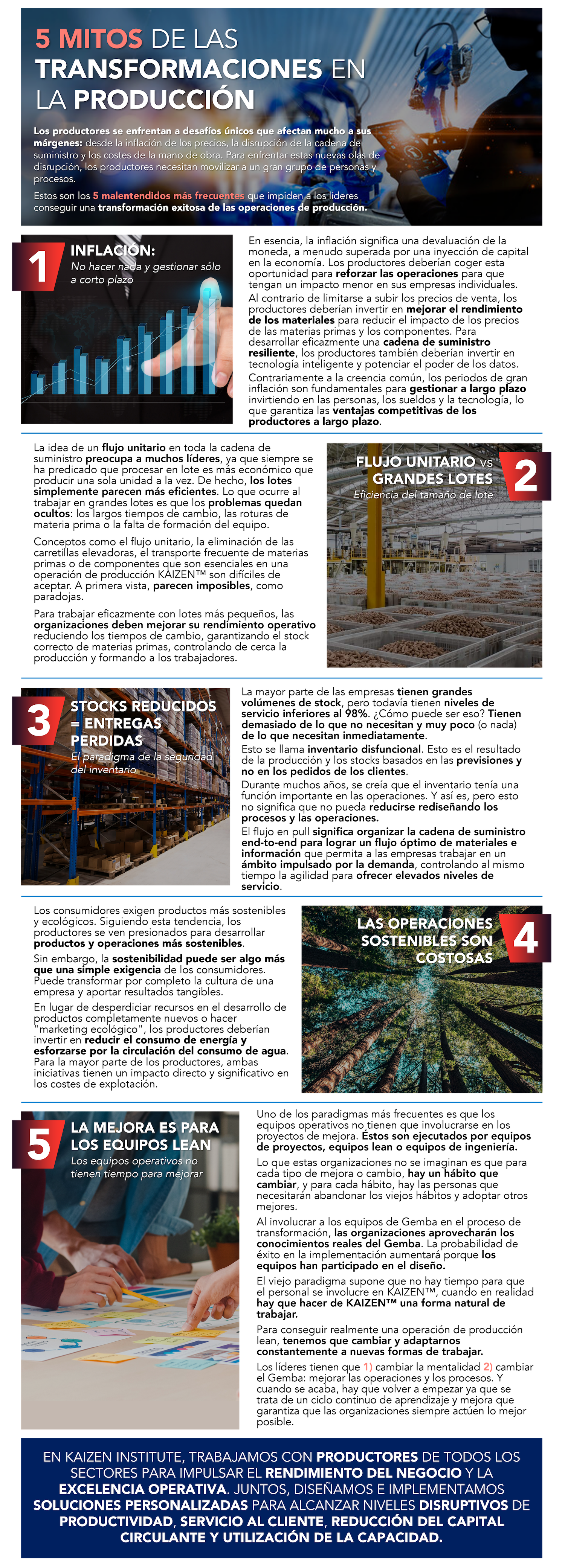 Los productores se enfrentan a desafíos únicos que afectan en gran medida a sus márgenes: la inflación de los precios, la disrupción de la cadena de suministro y los costes de la mano de obra. Para afrontar estas nuevas olas de disrupción, los productores necesitan movilizar a un gran grupo de personas y procesos. Estos son los 5 mitos más frecuentes que impiden a los líderes conseguir una transformación exitosa de las operaciones de producción: