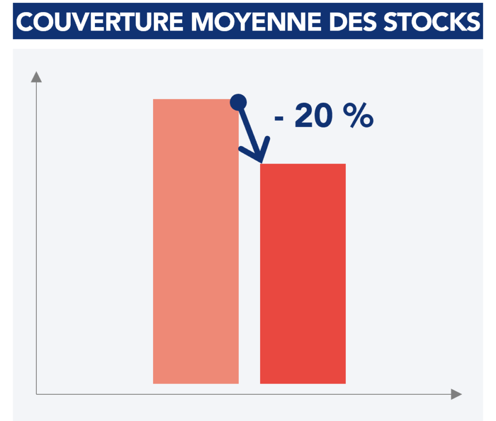 - Réduction de 20% de la couverture moyenne des stocks ;