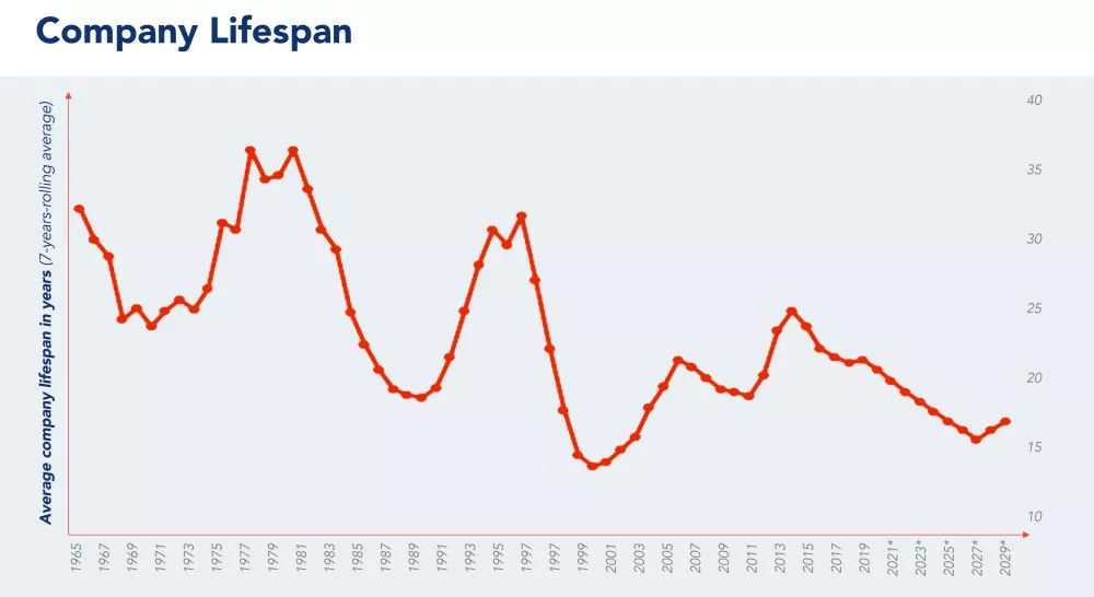 The lifespan of companies is decreasing and it will continue to decrease in upcoming years. Phenomena such as digital transformation and data analytics are becoming more important to reverse this trend.