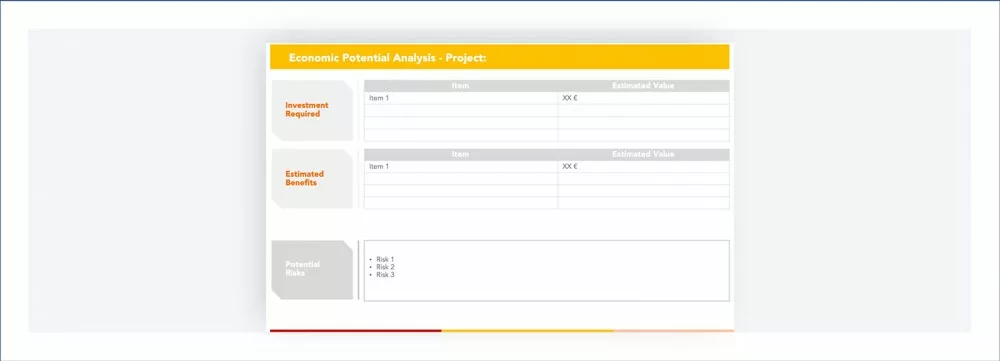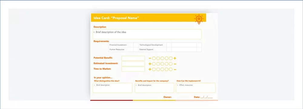 - Estimated benefits – define in more detail than in the ‘Idea Card’ what the gains with the implementation can be
