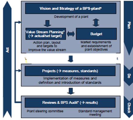 • Initiatives implemented with System CIP are deployed from Vision and Strategy along with Value Stream Analysis and, once closed, are Reviewed and Audited