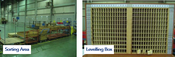 • Sorting of parts on arrival according to size and storage area: small parts on mobile shelves; medium parts on trolleys; large parts on pallets