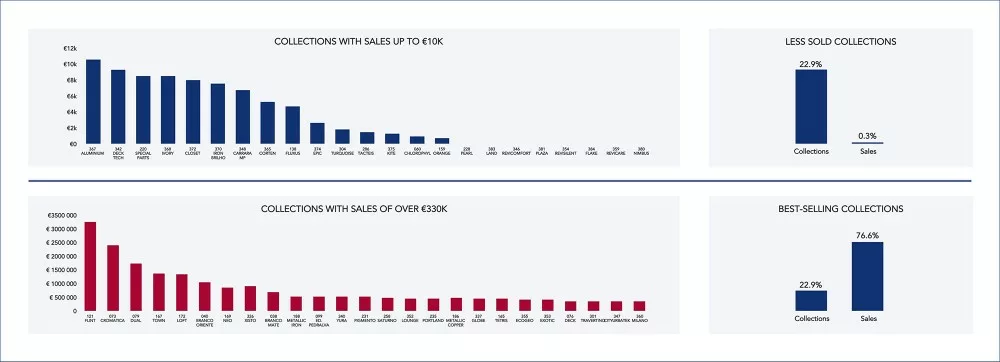 A preliminary analysis showed that there were many collections in the different product families where the sales value was residual.