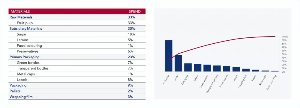 In the case of sugar and glass bottles, for which there was a high dependency and a high exposure to market fluctuations, the Value Analysis Value Engineering (VAVE) method was implemented, focusing on cost reduction. In the first case, the specific objective was to find economically viable substitutes for sugar, which did not impact on the characteristics of the final product. In the second case, working together with the supplier, the glass bottles were reconfigured to reduce their weight and, consequently, their cost.
