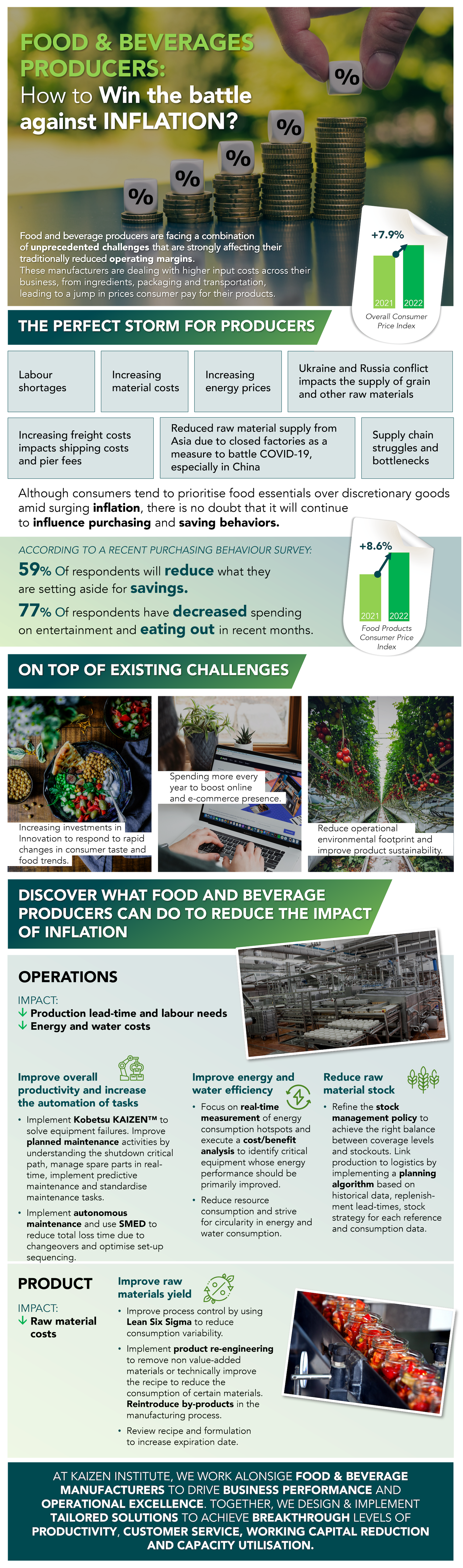 Food & beverages producers are facing a combination of unprecedent challenges that are strongly affecting their traditionally reduced operating margins. These manufacturers are dealing with higher input costs across their business, from ingredients, packaging and transportation, leading to a jump in prices consumer pay for their products.