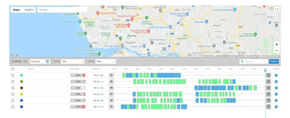 As described previously, the platform is powered by optimization algorithms to generate optimized planning solutions that allow teams to perform more services, traveling shorter distances, which reduces transportation costs and travel time, ensuring the time windows of all scheduled services.