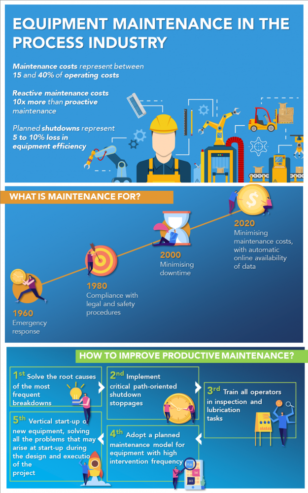 In the Process Industry, reactive maintenance of equipment costs approximately 10x more than proactive maintenance. Therefore, it is essential to have an overall maintenance strategy that considers this aspect.