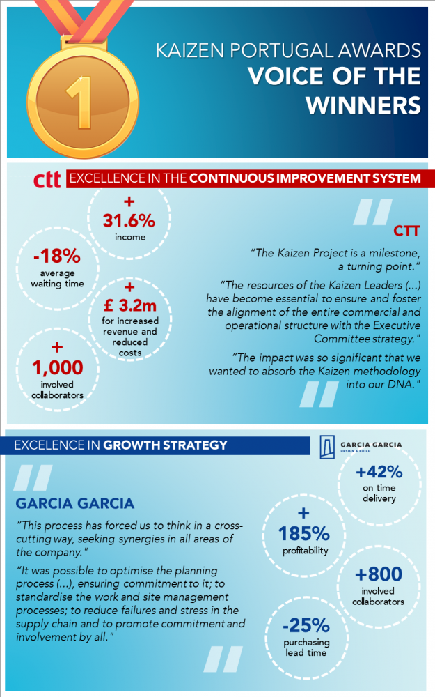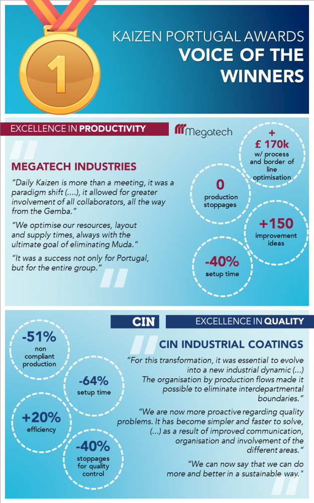 Last month the KAIZEN™ Portugal Awards took place, giving public recognition to some of the best KAIZEN™ efforts of top benchmark companies. Here are more details about what made them reach high excellence levels in each category.