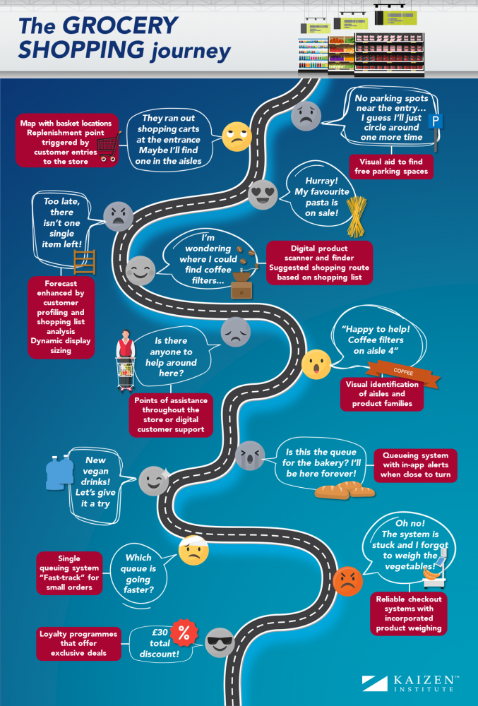 Grocery shopping feels like a roller-coaster ride for customers. They are faced with pain points and delightful experiences all in a few minutes.