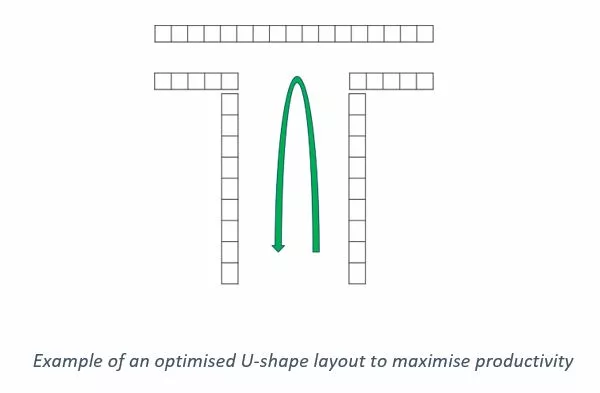 The layout changes, operations standardization, team training and improvement dynamics contributed to a 20% increase in productivity (measured in boxes per hour) with no increase in the number of occurrences.