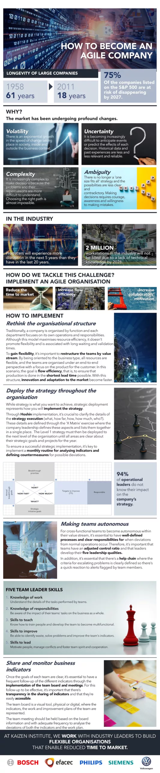 In 1958, the lifespan of an organisation was 61 years. After more than 50 years, that average is approximately 18 years. Therefore, it is essential to be increasingly better prepared to respond to the market’s volatility in a quick and agile way.