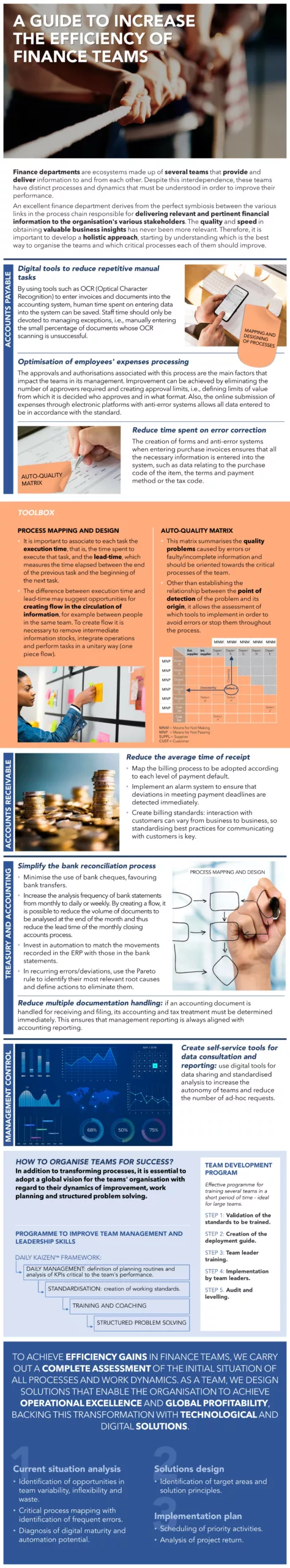 The interdependence of the various teams in the finance department requires a cross-cutting approach in the transformation of their processes. The accounting, treasury, or even accounts receivable teams have different dynamics and needs that must be supported and exploited in the transformation process.