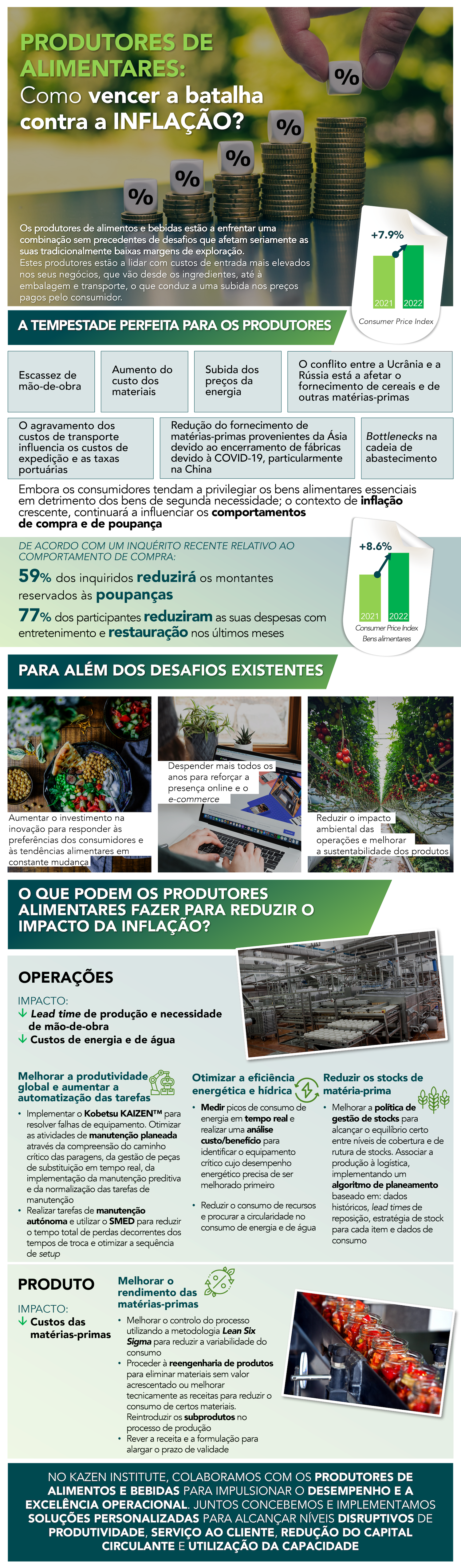 Os produtores de alimentos e bebidas estão a enfrentar uma combinação de desafios sem precedentes, que estão a influenciar as suas margens operacionais tradicionalmente reduzidas. Estes produtores estão a lidar com input costs mais elevados nos seus negócios, desde os ingredientes, até às embalagens e transporte, o que conduz a uma subida nos preços pagos pelo consumidor.